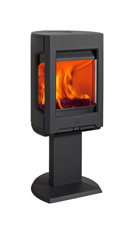 Jøtul's F 167 log burning stove is part of the F 160 series which consists of five main variants, with or without side glasses and with different bases and features. The Jøtul F 167 woodstove is characterised by the large side glasses and the elegant placement on top of a pedestal which with time has become an award-winning signature design for Jøtul. You can place a top made from soapstone on this stove. This will provide extra heat retaining capacities and a slightly different look. The wood stove is designed for modern living and is suitable for low effect heating. It burns at an optimal level even at 3kW.